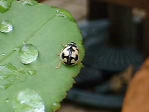 ![]() 「ヒメカメノコテントウ」の成虫です 気温が上がってくるとこの種類のテントウムシ の幼虫、成虫が多くなってきます 他のテントウムシと比べて動きが速いのです |