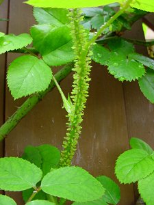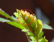 | 今年は、なんだか春が早くやって来たような気がしませんか? とても暖かかった日には、庭の植物たちがぐんぐん生長していくのがわかります。 ちょっと見ない間に・・・バラの柔らかい新芽にアブラムシがびっしり。。。 よく見てみると、お行儀よく、隙間なく、半逆立ちでいるではありませんか(苦笑) 中には羽のついたアブラムシも見ることが出来ます。 羽のついたアブラムシは、植物に対しての密度が高くなった時に 発生して、新天地に繁殖場所を求めるそうです。 |