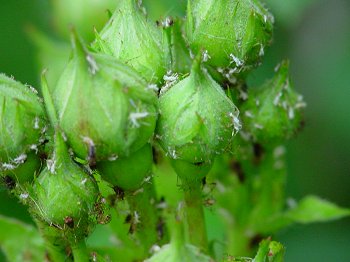 春先にアブラムシが出始めました。 アブラムシの繁殖力はすさまじく、あっという間にバラというバラに広がっていきました。 今年は、木酢液もEMストチュウも散布せず、様子をみることにしました。 蕾にはびっしりとアブラムシが張り付いていましたが、それがいつの間にかパッタリと姿を消すように なったのです。 よく観察してみると、至る所にアブラムシの天敵の彼らを見つけることが出来ました。 アブラムシの繁殖力よりも彼らの食欲の方が上をいくようです。 |