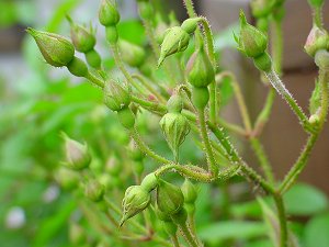 | 右の写真のように蕾の首が折れ曲がり、 やがてその部分は、軽く触れると簡単に落っこちます。 |