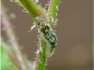 アブラムシを食べてくれる頼もしいヒラタアブの幼虫 |