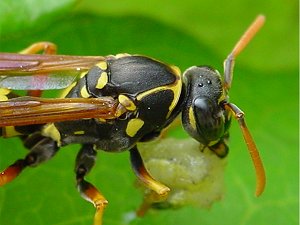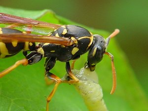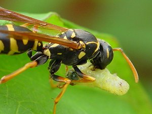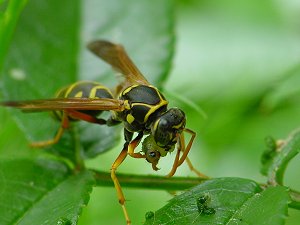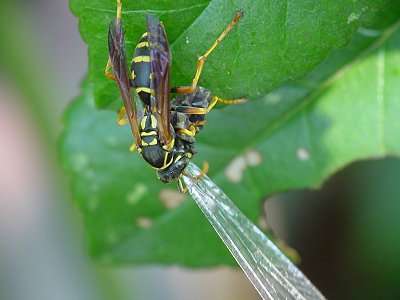 | アシナガバチの狩りはご存知の通り幼虫に与えるためのものです。 巣が大きくなるこの時期は、狩りも盛んに行われます。 |
