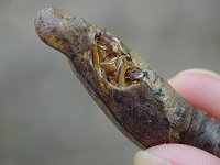 ![]() 地面に接している側に、な、なんと大きな穴が開いていました。 実は、10月に見つけて10日ほど後には、既に小さな穴が開いていたのでした。 |