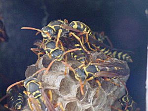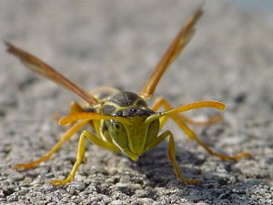 ![]() 顔面まっ黄色のアシナガバチのオスが 陽の当たる門柱に集まります。 冬を越すことが出来ないオスバチ。 温かい場所を求めて、 たくさんのオスバチが飛び交います。 |