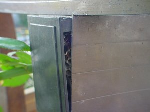 こんな隙間から、アシナガバチが 出入りを繰り返していました。 |