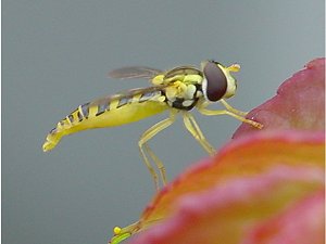 幼虫はアブラムシを食べますが、成虫は花粉を食べます。