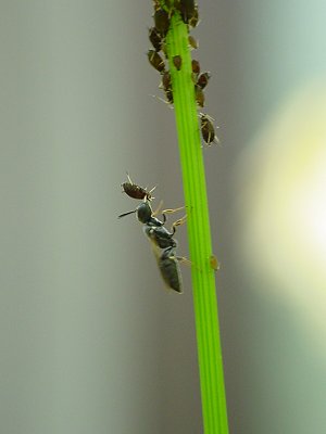獲物はアブラムシのみを狩り,巣は材の小さい穴を利用してつくられ,