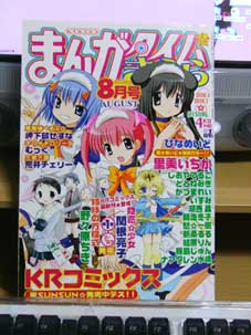 まんがタイムきらら 8月号 トリコロ未だに復活せず、今月出るイメージアルバムとかの影響だと思うので来月には 復活してくれるはず・・・ 三者三葉、今月はクリーンヒットしたのが多かったです、一番のヒットは 『「人間の分際で生意気な!」って言ってみて!!』 「うつぼ捕ったどーーー!!」も捨てがたいですがやはりこちらですね。 ホワイトロリータ、ついにというかようやく眼鏡属性が戦線に投入。 大人しい委員長系かと思いきや?! まあこういうのも悪くないかも? 気になったニュース ・セガ、「ファンタシースターオンライン ブルーバースト」正式サービス開始。バージョンアップも実施 くそう!あれだけやったゲームだと言うのにまたやりたくなってきたよ!! 仕事が決まったら絶対にこれが動くPC買ってやるからな!!! ・松下、夏休みノートPC組み立て体験教室を開催〜自分でLet'snote R3を作ろう 高校時代は無かった事にしたいのですが、今だけ高校生に戻りたい。 ・アップル、iPod miniを7月24日に発売−価格は28,140円 む〜、いらないと思っていたのですがいざみてみるとちょっと欲しくなってきますね。 しかし、値段がちょっと厳しいなぁ〜。 4GBあれば200時間以上いけるからいちいちCDに焼く手間が省けるのですが上の機種が 1万足せばいけますからね〜、結局保留かな。 ・「ソニーのHDDウォークマン宣伝は誤解を招く」とApple 確かにわたしもあのCMは『うそ大袈裟紛らわしい』に該当すると思いました。 絶対最低レートで、しかもMP3以外だと思ったら案の定これですよ、底が浅いですよね。 そのつもりで買った人が後悔しない事を祈るばかりです。 (注:桐野はソ○ーが嫌いです) 関連→「HDDウォークマン」に関する一考察 ・米ポップ界で13歳のジョジョがセンセーションに 新手のスタンド使いか!!!(これが言いたかっただけです、この歌手に興味は一切ありませんのであしからず) ・「魔法先生ネギま! 1時間目 お子ちゃま先生は魔法使い!」PS2でゲーム化 ・・・出ちゃうんだ・・・本当に近年のコナミはこういうのが多いな〜。 願わくば、裕奈タンが活躍しますように。