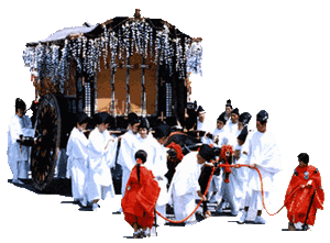 この祭りの特徴は、氏子や町衆の参加しない国家的な行事として行われて来たことで、我が国の祭りの中でも、唯一王朝風俗の優雅な伝統を保ち続けている。☆ 行列コースとその通過時間 ☆