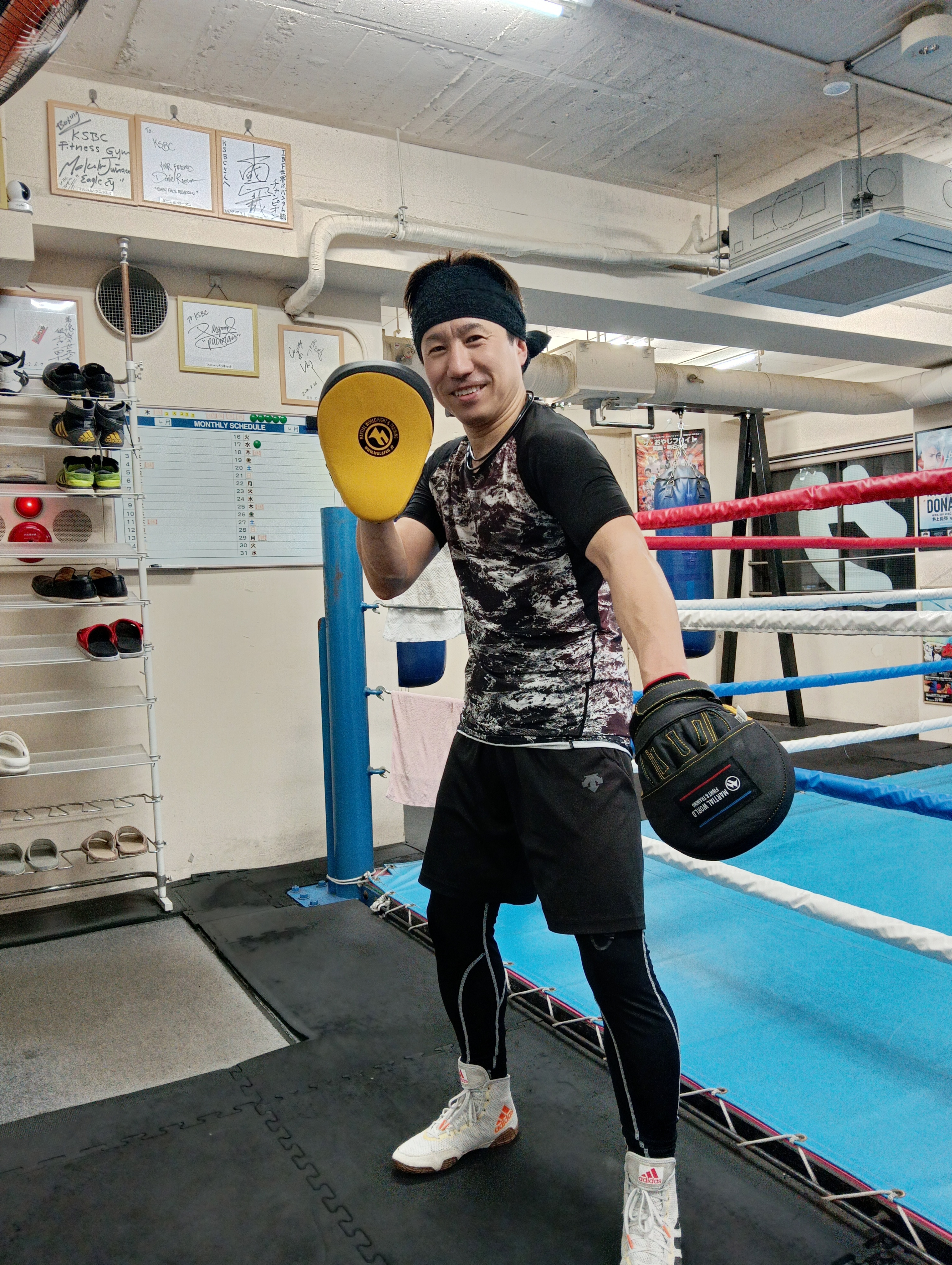 44歳でKSBC(神戸スポーツボクシングクラブ)にてボクシングを始め、おやじファイト戦歴2戦。元プロ選手を相手にタイトルマッチの経験もあります。