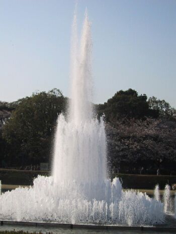 丁度櫻並木と逆にあった美術館方向の噴水。