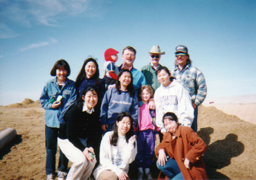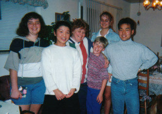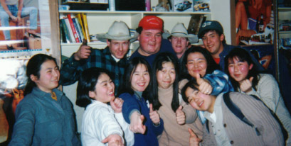中央のミセスフォックス宅にて。写っている日本人はたまたま同時期に来ていた