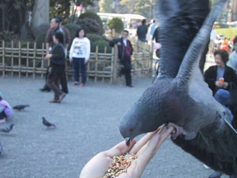 おもいっきりハトと遊びたい人は午前中狙いましょう♪