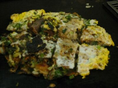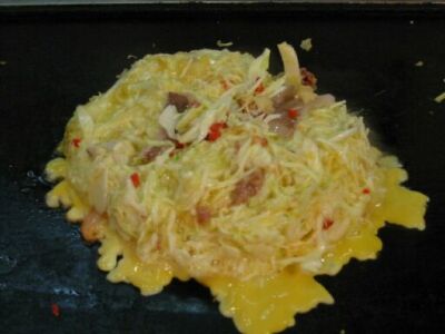 続いてミックス焼きの途中経過。ふんわり焼き上げるのがコツ?