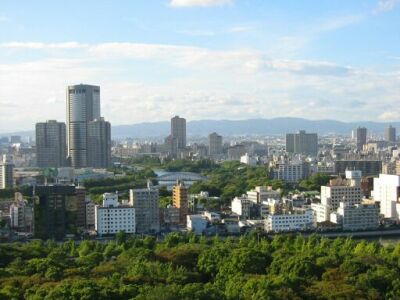 城の西側の緑地。はるか彼方は生駒山かな?(・−・)・・・ん?