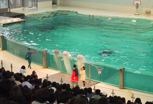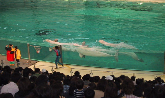 海の動物ショーでのシロイルカちゃん。