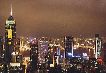 夕食を終えると、また観光バスに乗って次は香港100万ドルの夜景を楽しめるビクトリア・ピークへ。香港島の最高地点(標高554m)から眺めは、すばらしい!観光客でいっぱいだった。 |