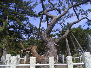 | 羽衣の松, 樹齢650年を超えるという松。天女の羽衣がこの松に引っかかっていたと言われます。周りは美しい松林が続いています。 |