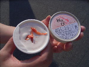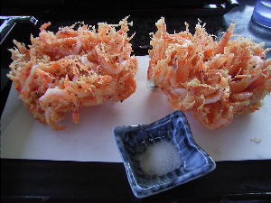 | 由比の名物は「桜えび」。ざるそばに付いていた「桜えびのかき揚げ」サクサクして美味しい。 | なんと桜えびがアイスクリームに、ちょっと塩辛いがさっぱりして美味しかった。 |