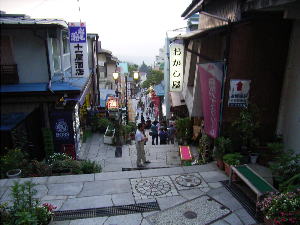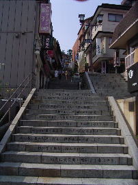 翌日、石段を下から見た構図。ちょっと見にくいが、石段には与謝野明子の詩が刻まれている。
