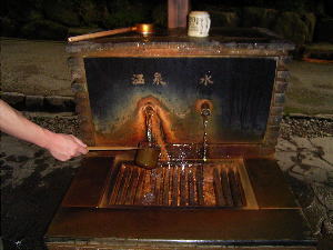 毎分4000g湧き出るという。すぐ横が源泉露天風呂です。鉄分を多く含んだ「黄金の湯」に入ることができます。