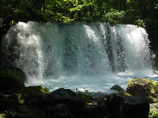 | 銚子の大滝 奥入瀬一番の観光ポイント。幅20m、高さ7mあります。 |