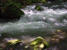 阿修羅の流れ 水飛沫をあげて、岩の間を勢いよく流れて行きます。 |