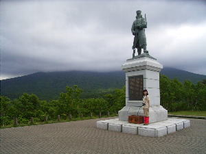 | 八甲田山といえば、映画にもなった死の行軍遭難事件。この像は、雪に埋もれて立ったままの仮死状態で、捜索隊に発見された後藤伍長の像。 |