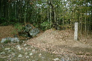 名古曽の滝跡 滝の音は、絶えて久しくなりぬれど 名こそ流れて、なほきこえけれ ご存知百人一首、藤原公任の歌。大沢の池の周囲にあり、平安時代中期から枯れてしまっていたようです。手前は、遣水の跡で大沢の池に注ぎます。 |