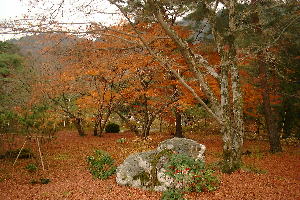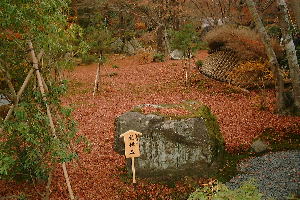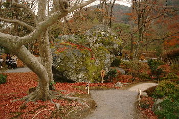 | なんと宝厳院(ほうごんいん)は、140年ぶりの公開だそうだ。お庭の紅葉はすばらしいってことだったんだけど、すっかり落ち葉。 | 一本だけもみじが残っていました。 |