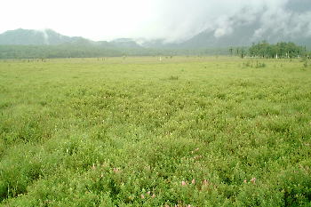 | 中禅寺湖の脇にある広大な湿地帯。山岳信仰を集める男体山の噴火で出来た。 |