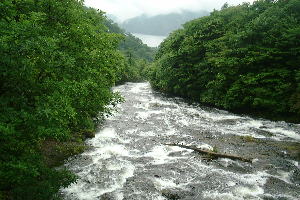 | 中禅寺湖へ抜ける途中にある沼。湖面から朽ちた木の幹が出ている。不思議な雰囲気。 |