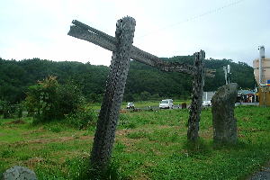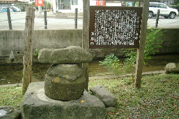 | 伝承園のすぐ横にある。見過ごしてしまいそうだが、鳥居の跡だそうだ。 |