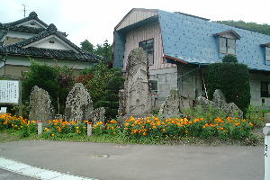 | 追分の碑 古道の大槌街道と早池峰街道の分岐点に建てられた道標。 |