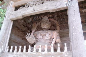 ↑この寺に逃げ込んで火災を免れたカッパが、狛犬になっています。頭にサラがついています。 ←山門が立派な常堅寺。ここの仁王様はユーモラスな顔をしています。 |