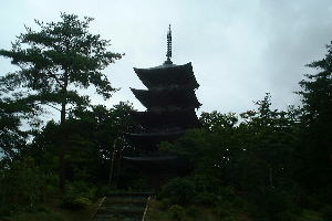 | 遠くからでも目立つ五重塔。境内は広く、建物は比較的どれも新しい。一木彫の大観音像が有名。 |