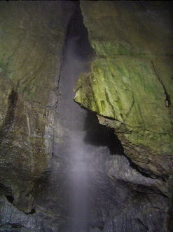 | 天の岩戸の滝 なんと洞窟の一番奥に落差29m日本一の洞窟の滝があります。 |