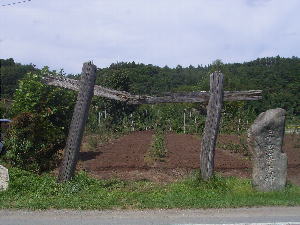 | 古道跡鳥居 伝承園の隣にある朽ちた鳥居。 |
