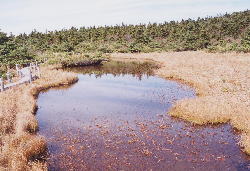 | ドッコ沼 蔵王温泉からロープウェイで蔵王中央高原を散策。ホテルが脇に建ち、景色としてはいまいち。 |