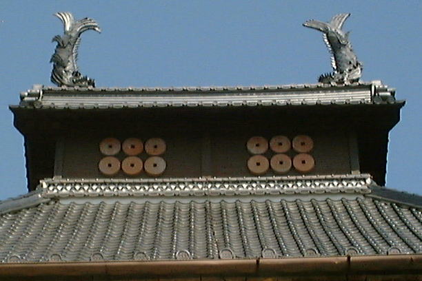 | 真田家の菩提寺であった長谷寺が、信之が松代移封とともに移転してきた。名も長国寺に改め。 | 屋根には真田家の家紋、六文銭と鯱ほこがある。六文銭とは、三途の川の渡し賃という意味だそうだ。 |