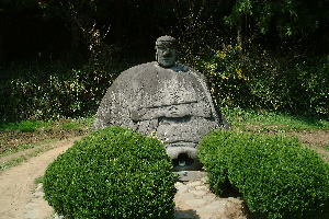 | 下諏訪の春宮と秋宮は、神様が鎮座する季節によって命名されているそうです。秋宮とは結構離れています。 | 万治の石佛 春宮のすぐ近くにたたずむユーモラスな石仏。かの岡本太郎氏が大絶賛した。 |