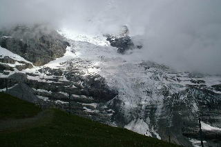 アイガーグレッチャー〜クライネ・シャイデック クライネ・シャイデックからユングフラウヨッホ行きの登山電車に乗ると、次のアイガーグレッチャー駅からトンネルの中に入る。つまり電車は山の中を突き抜け、ユングフラヨッホに行く。帰りはアイガーグレッチャーで下車し、クライネ・シャイデックまでハイキング。 |