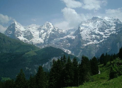 左から、アイガー、メンヒ、ユングフラウのパノラマ