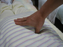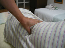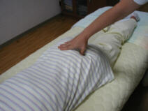 お客様の状態によって、指圧・掌圧での手当が一通り終わったら 仰向けになって、ストレッチをします。 写真上から身体をひねる運動。股関節を広げる運動。大腿部をのばす運動などを 行います。これらの運動中も完全にリラックスしていただき、ゆっくりと 力任せにすることなく、自然な動きが中心になります。 私はその流れをアシストするだけです。 ☆お詫び☆ 私は身長155.5cmのチビッコゆえ、このストレッチが身体の大きなお客様に おかれましては残念ながら出来ない場合があります。 ご了承下さいませ。 腰痛退治の一部をご紹介致しました。この他に、張りの強いお客様や 身体の大きなお客様には「ヒジ」を使った施術も行います。 しかし、コリとるの基本はコリを掴むことにありますので いきなりヒジを使うことはいたしません。 まずは指でほぐしてから、次にヒジの操作へという順序で行います。 やはり指でないと、コリのピンポイントを掴まえることが難しいからです。 ヒジでの操作は指よりも強い圧を加える事が可能になりますが 大きなあたりに感じられると思います。 指とヒジを有効に使うことによって、しつこい腰痛を退治していきます。 慢性腰痛とオサラバしたい方は、コリとるの腰痛退治を是非お受け下さい!! |