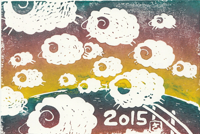 ・皆さんが紙の年賀状から手を引きつつある昨今,自己満足の版画だよなぁと思って年賀状を作って出したのでした.
