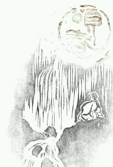 ・渾身(!)のゴム版です.二色刷. ・吉川英治作:新平家物語,杉本健吉画伯の挿し絵より.那智の滝に臨む義経. ・出した人に褒めてもらったのは良いけど,釣りをしているんじゃないですってば.
