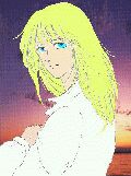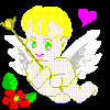 ←天使の絵.ドット修正の嵐でした.クリスマス用の壁紙に作りましたが,これをタイルに張って壁紙にしたら,ちょっと目が痛かったです.(原寸大)