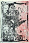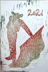 1985:丑年 ゴム版で子牛を彫った.馬のようになった.が,残っていない. |