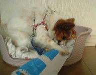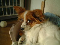 2歳 「耳毛」がからまって しまい、しかたなく 切ってしまいました。 |