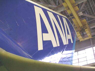 | ジャンボの機体を作業用の鉄の足場が機体を囲んでいる